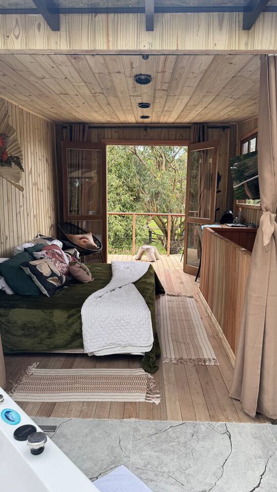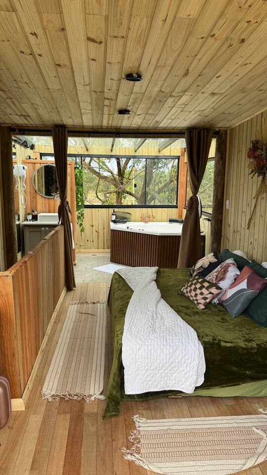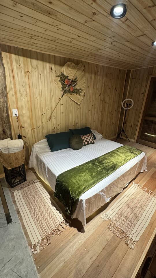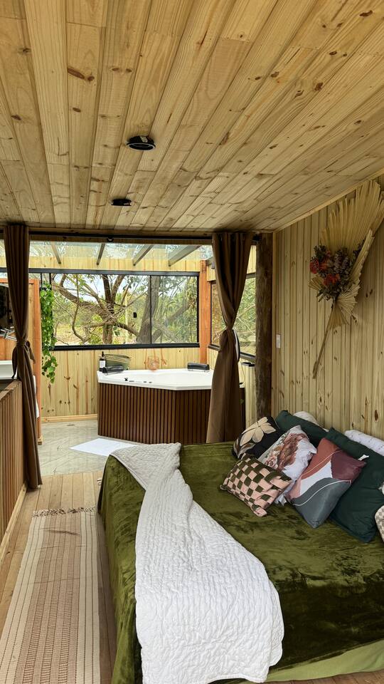 🌲✨ Venha viver momentos inesquecíveis em nossa cabana Éden. Um refúgio cercado pela natureza, ideal para quem busca paz, liberdade e boas energias. Aqui você escolhe como aproveitar: traga seu pet para curtir ao seu lado, venha com seu amor, família,amigos ou simplesmente sozinho para relaxar. O Espaço tem Wi-Fi, sistema Alexa , smart TV , hidromassagem, lareira externa , teto panorâmico .