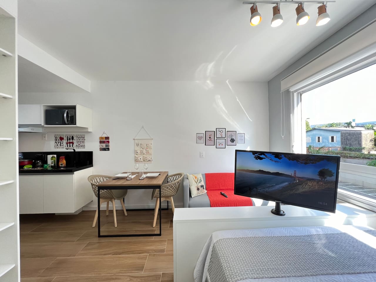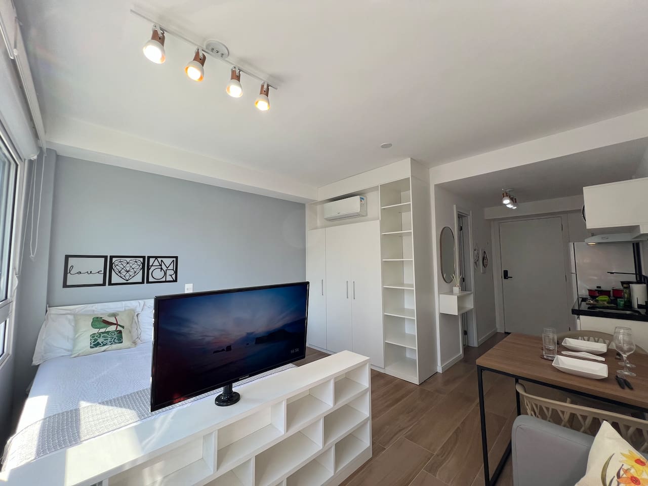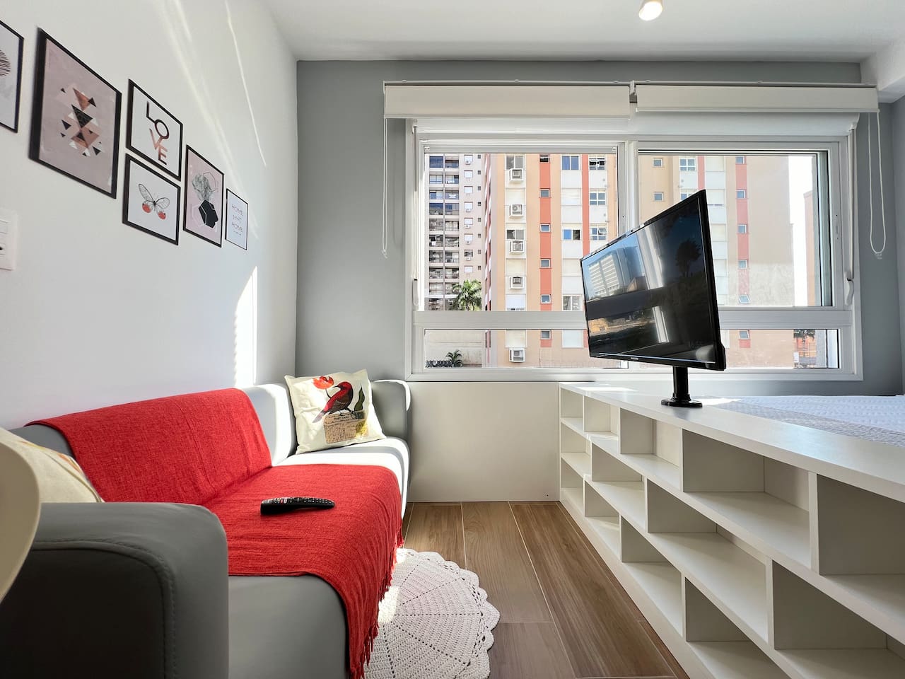 Hóspedes podem usar: Rooftop 19° andar | Piscina | Academia | Lavanderia | Espaço Co-work • Estacionamento interno grátis (garagem) • 4min ⟶ PUCRS • 15min ⟶ Consulado e Centro • Portaria 24h • WiFi veloz • Elevador • Ar condicionado • SmartTV (Netflix, YouTube, Disney+, Amazon, GloboPlay, +) • Check-in Flexível • Supermercados próximos (2min)! Oferecemos: Toalhas e roupa de cama :) ✅ Resolvemos problemas em até 72h 🙌