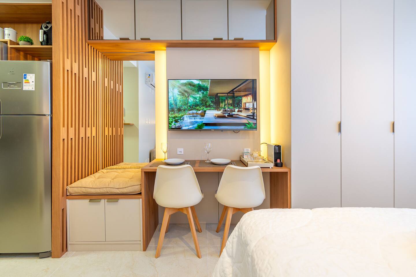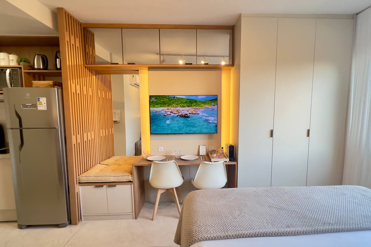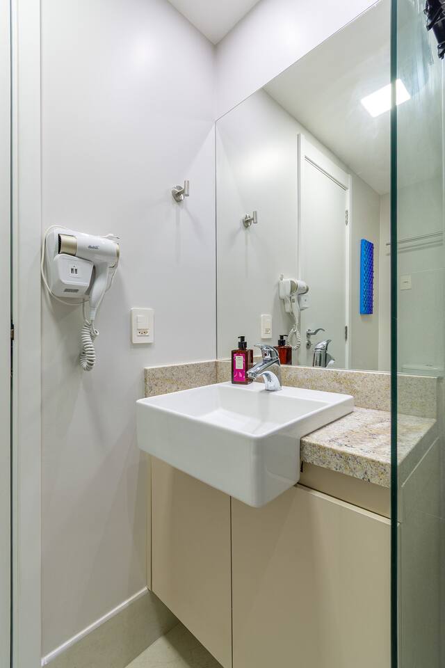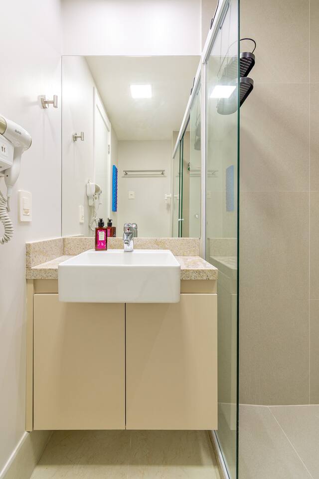 No seu apê, você vai encontrar tudo para uma estadia confortável, prática e acolhedora 🏡✨ ☕️ Nespresso com cápsulas de cortesia + cafeteira tradicional — porque um bom café faz toda a diferença! 🛏️ Cama QUEEN super confortável para noites de descanso perfeitas 🛋️ Sofá-cama aconchegante, ideal para um 3º hóspede ❄️🔥 Ar-condicionado quente e frio, garantindo conforto em qualquer estação 📺 Smart TV com acesso a Netflix, Amazon Prime, YouTube e Disney+ — entretenimento garantido! 📶 Wi-Fi rápido, perfeito para trabalhar, estudar ou maratonar sua série favorita 🍳 Cozinha equipada com airfryer, liquidificador, panelas, utensílios e tudo o que você precisa para preparar ótimas refeições 🛁 Banheiro completo, com secador de cabelo, toalhas de banho e de rosto — tudo pensado para seu bem-estar