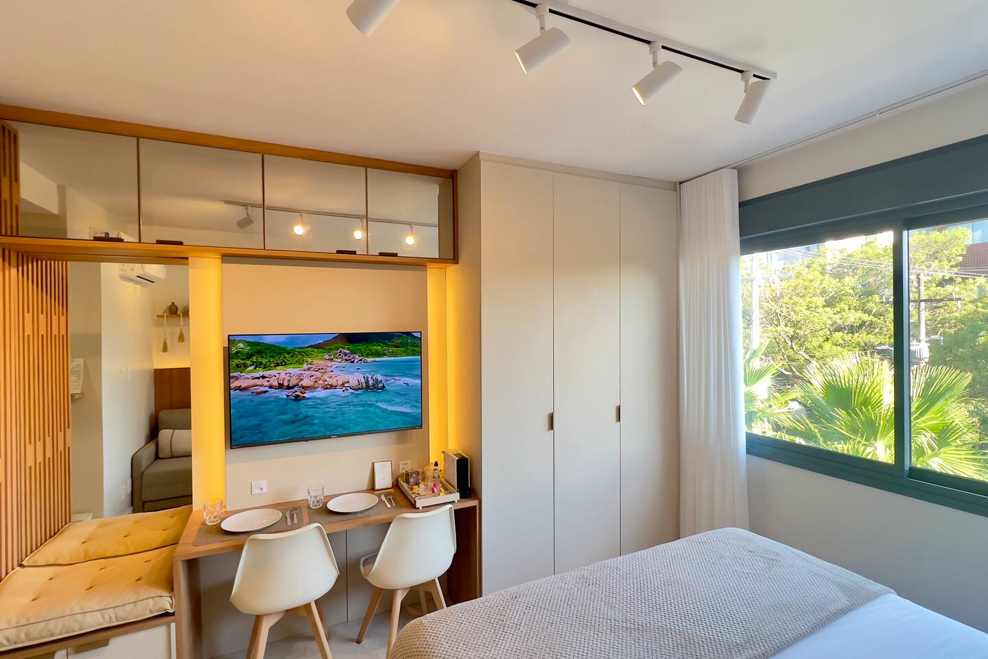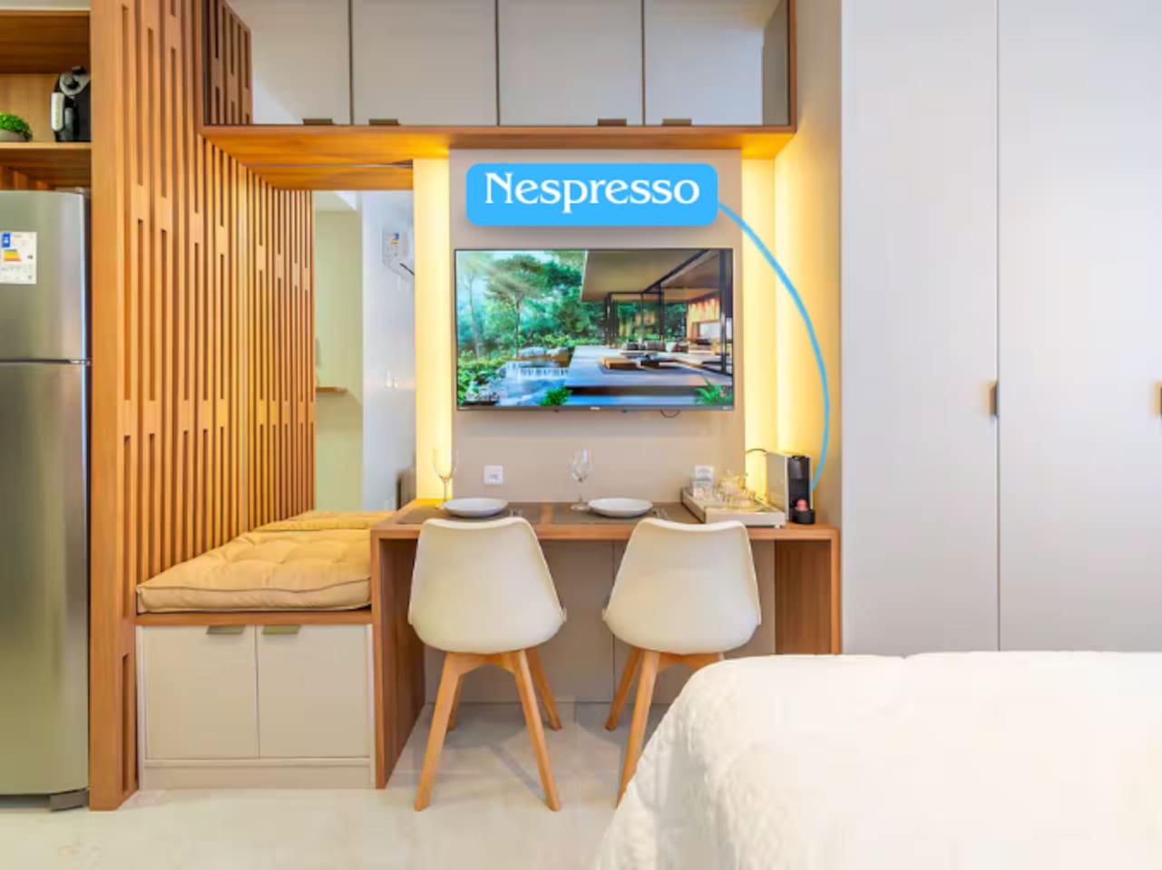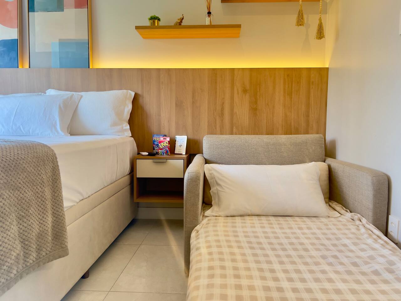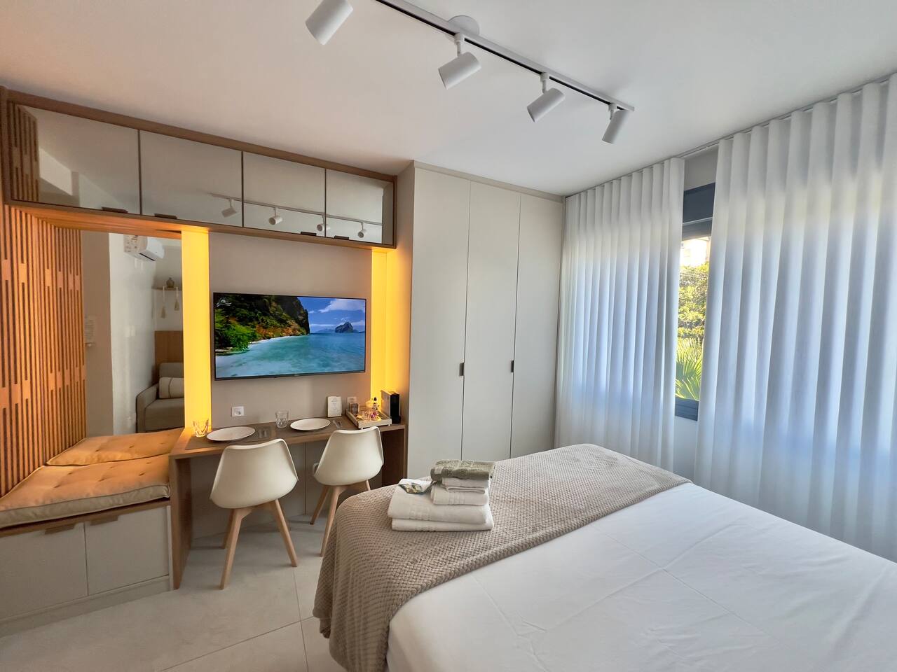 No seu apê, você vai encontrar tudo para uma estadia confortável, prática e acolhedora 🏡✨ ☕️ Nespresso com cápsulas de cortesia + cafeteira tradicional — porque um bom café faz toda a diferença! 🛏️ Cama QUEEN super confortável para noites de descanso perfeitas 🛋️ Sofá-cama aconchegante, ideal para um 3º hóspede ❄️🔥 Ar-condicionado quente e frio, garantindo conforto em qualquer estação 📺 Smart TV com acesso a Netflix, Amazon Prime, YouTube e Disney+ — entretenimento garantido! 📶 Wi-Fi rápido, perfeito para trabalhar, estudar ou maratonar sua série favorita 🍳 Cozinha equipada com airfryer, liquidificador, panelas, utensílios e tudo o que você precisa para preparar ótimas refeições 🛁 Banheiro completo, com secador de cabelo, toalhas de banho e de rosto — tudo pensado para seu bem-estar