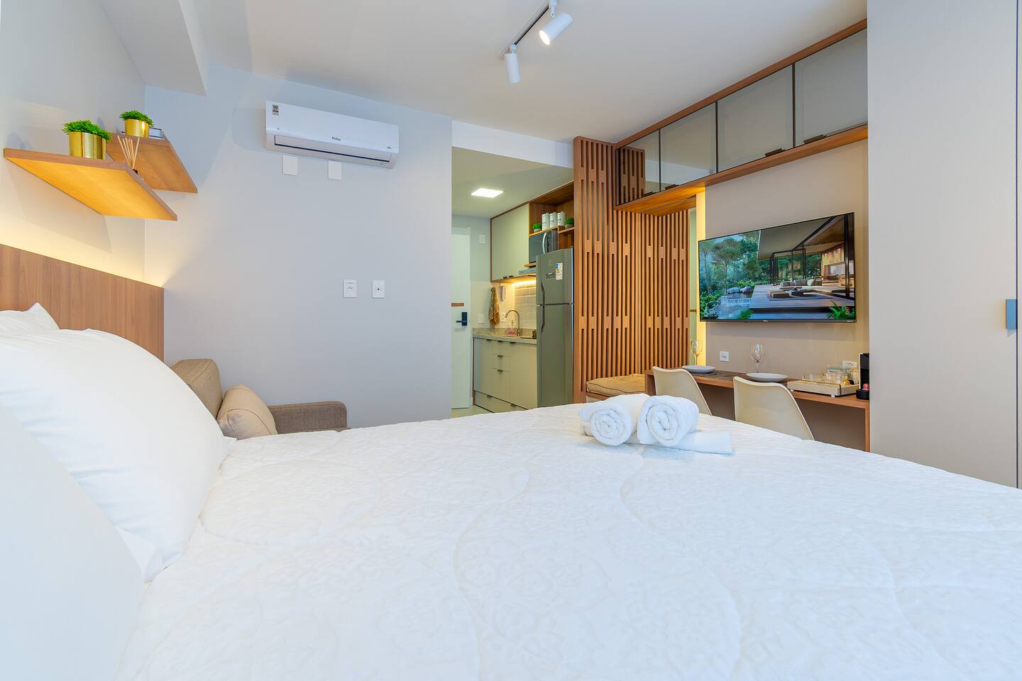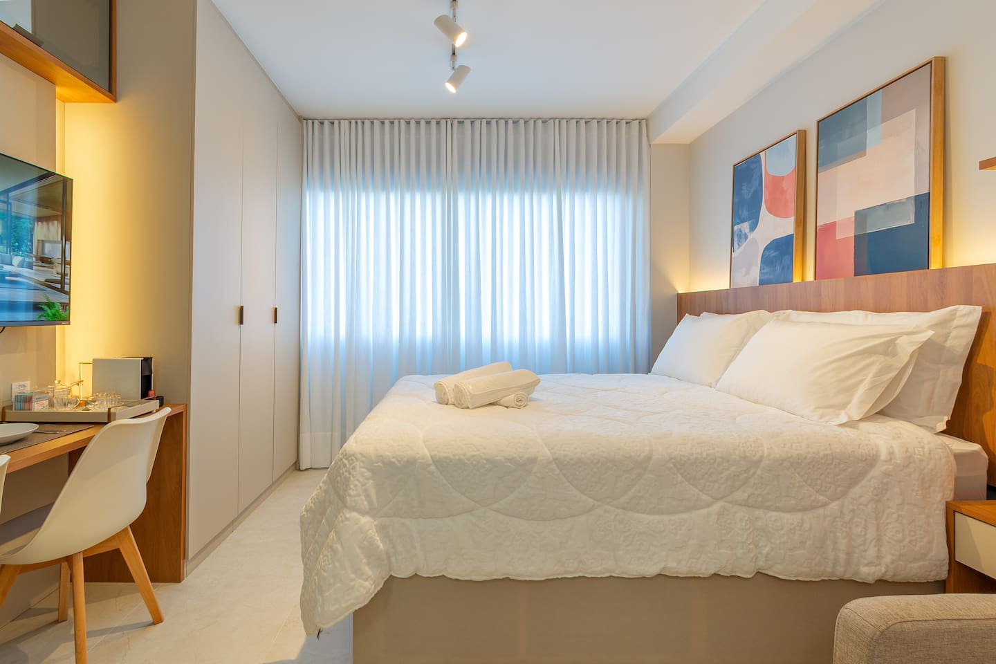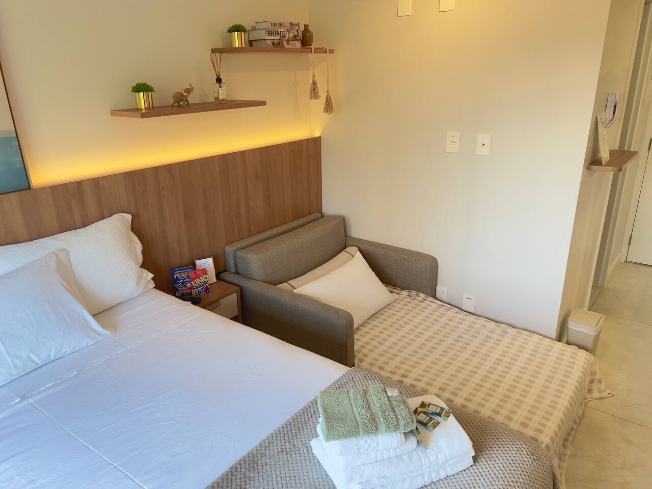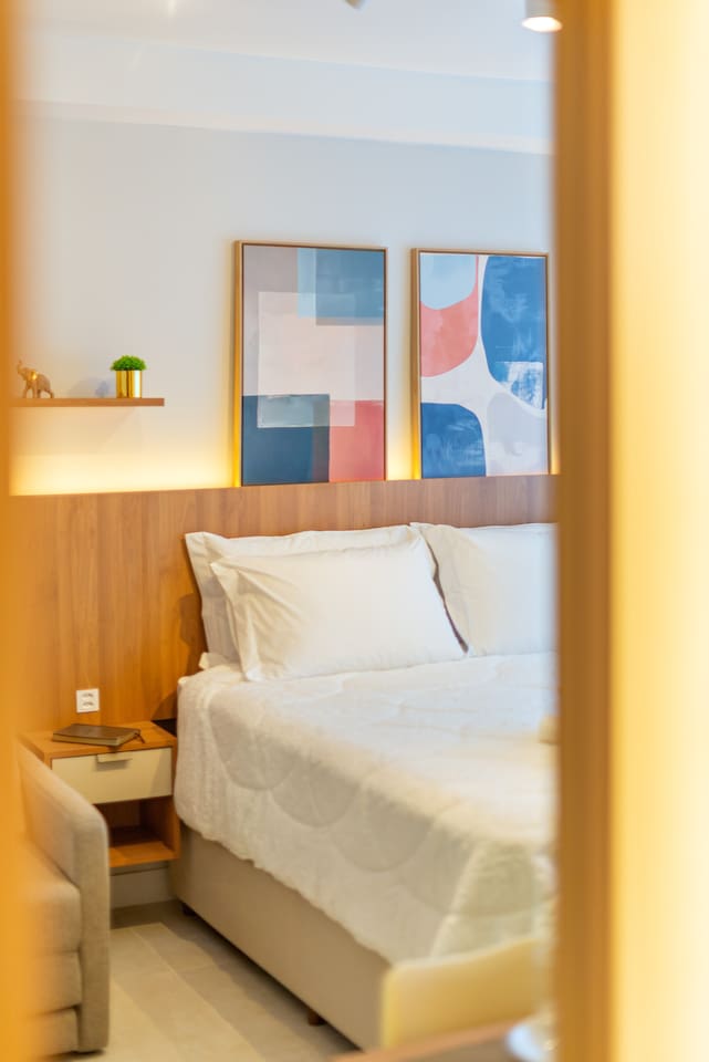 Seja bem-vindo! ☺️ Preparamos tudo com carinho para que sua estadia seja incrível — seja a lazer ou trabalho 💼✨ 🏢 Estrutura completa: Piscina, Academia 24h, Coworking 24h e Estacionamento incluso 24h, Self-Checkin, Portaria 24h 🛏️ Cama QUEEN + Sofá-cama (3º hóspede) ❄️🔥 Ar-condicionado (quente/frio) 📺 Smart TV (Netflix, Amazon, YouTube) 📶 Wi-Fi rápido ☕️ Cozinha equipada com Nespresso, cafeteira tradicional, utensílios e mais 🛁 Banheiro com secador, toalhas de banho e rosto