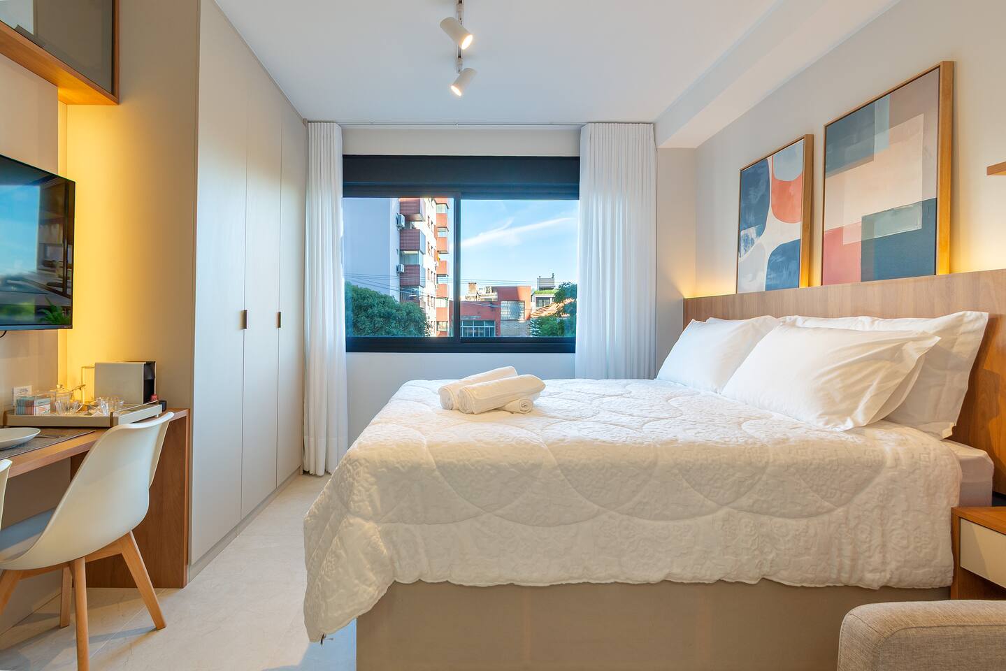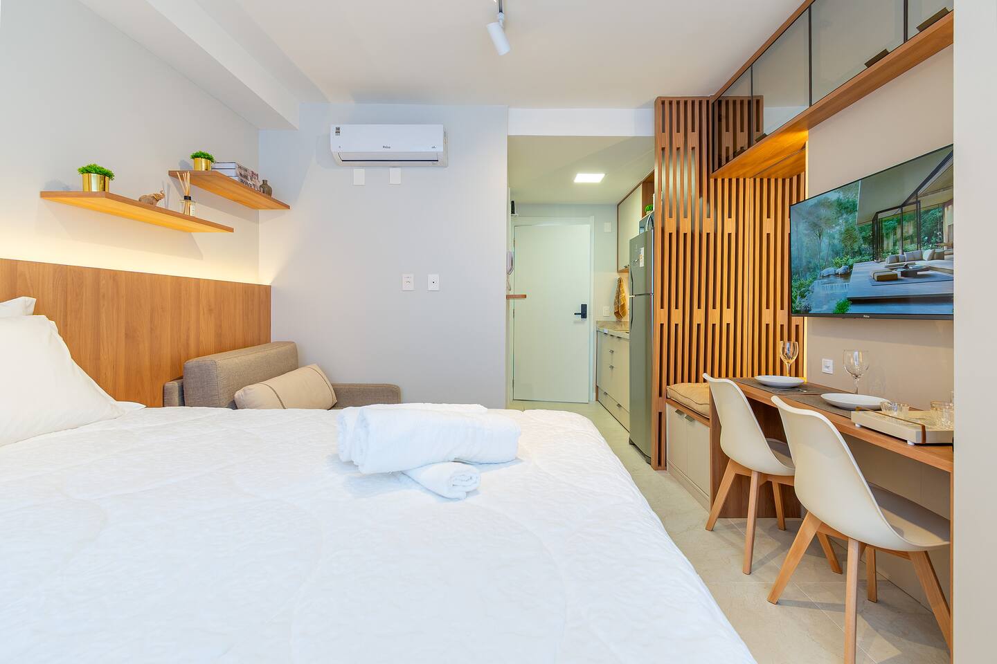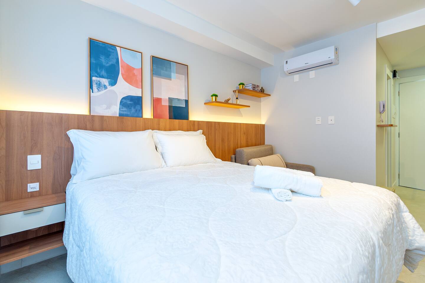 Seja bem-vindo! ☺️ Preparamos tudo com carinho para que sua estadia seja incrível — seja a lazer ou trabalho 💼✨ 🏢 Estrutura completa: Piscina, Academia 24h, Coworking 24h e Estacionamento incluso 24h, Self-Checkin, Portaria 24h 🛏️ Cama QUEEN + Sofá-cama (3º hóspede) ❄️🔥 Ar-condicionado (quente/frio) 📺 Smart TV (Netflix, Amazon, YouTube) 📶 Wi-Fi rápido ☕️ Cozinha equipada com Nespresso, cafeteira tradicional, utensílios e mais 🛁 Banheiro com secador, toalhas de banho e rosto