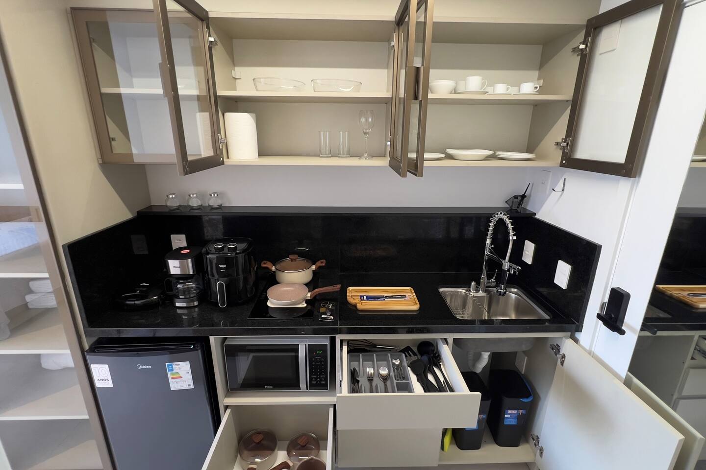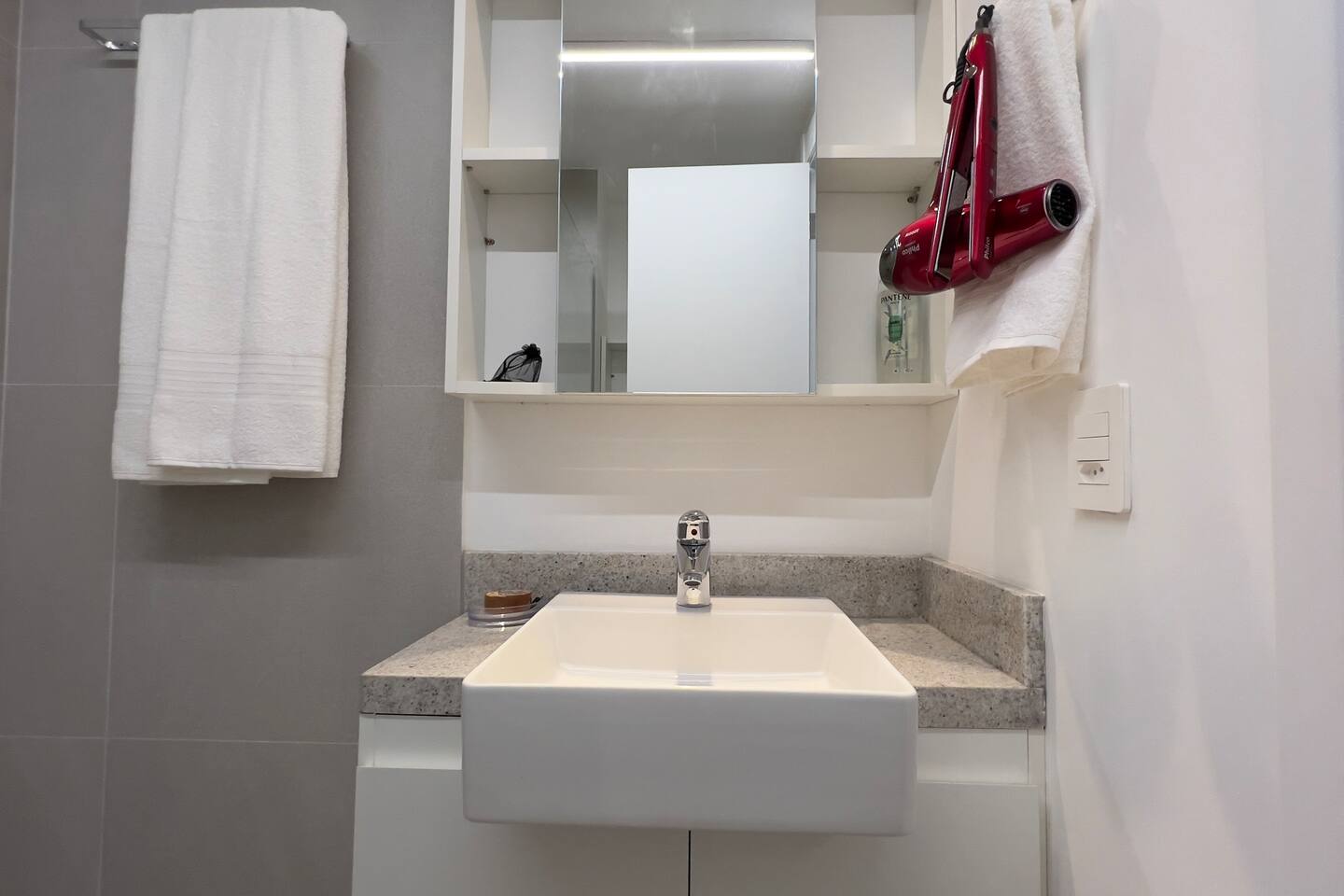 Acesso principal através da portaria 24h e garagem (coberta) Total acesso a todas as áreas comuns do condomínio! • Piscina panorâmica para relaxar e apreciar o visual + vestiário e chuveiro externo • Rooftop com vista deslumbrante da cidade • Academia moderna e bem equipada • Pet place para seu pet • Espaço Cowork confortável e funcional • Lavanderia (paga) • Estacionamento rotativo grátis - precisa informar a placa do veículo. • Bicicletário à disposição dos hóspedes