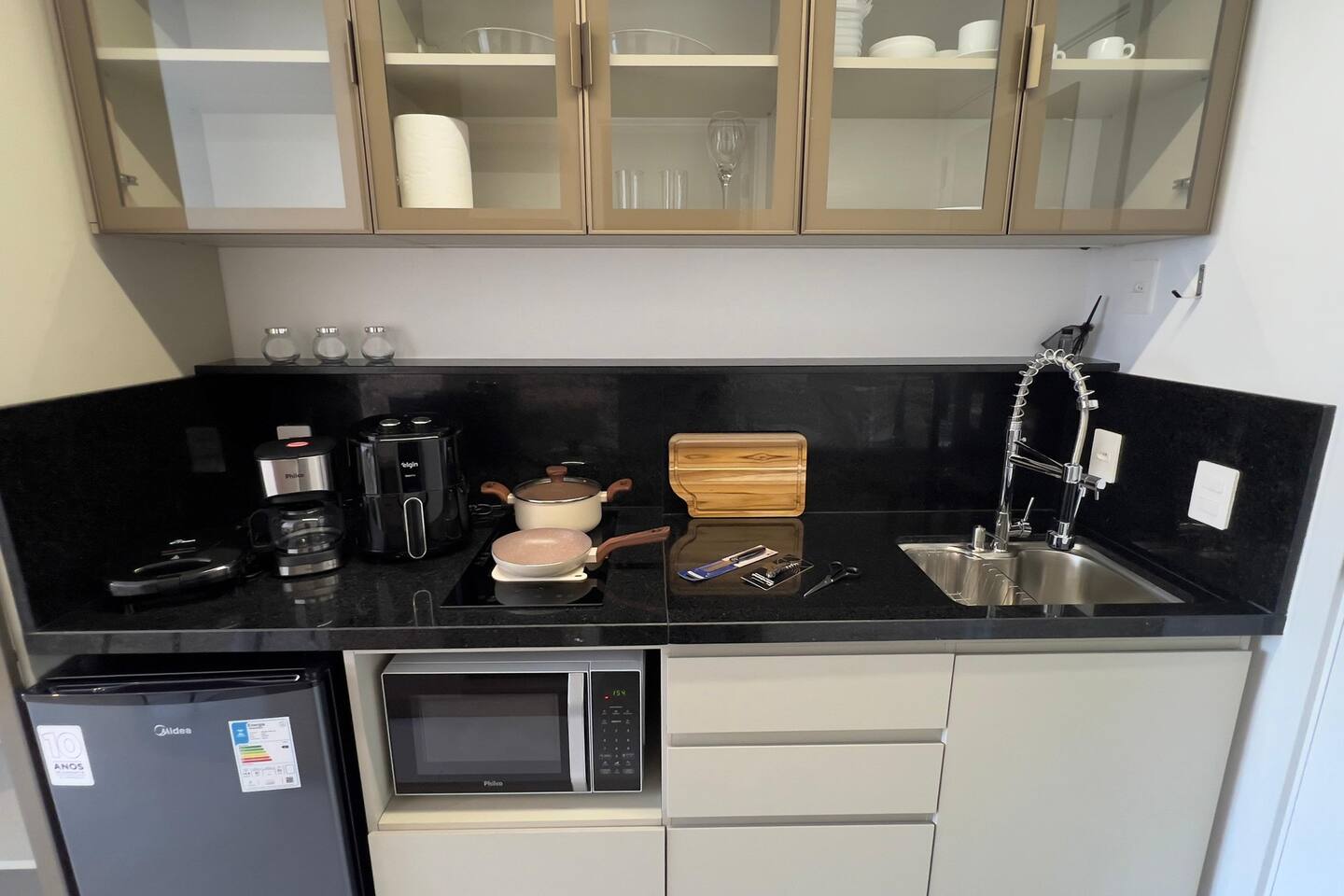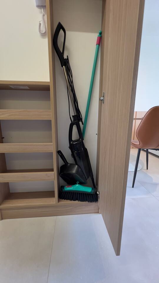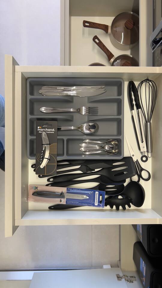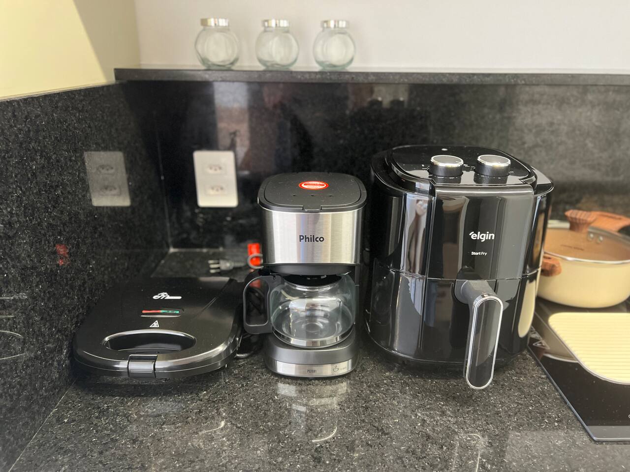 👉 BANHEIRO Chuveiro quente com aquecimento central, pia com sabonete para mãos e toalhas limpas (banho e rosto) tapete, secador de cabelo e chapinha. ✅ QUARTO Cama de casal, roupeiro espaçoso, mesa de escritório e poltrona confortável, 2 travesseiros + 2 extras, cobertor para o frio, SmartTV, 2 cadeiras para sentar, mesa de jantar, luminária, ferro de passar roupa e WiFi 350mb 👨🍳 COZINHA Panelas, taças de vinho, copos de vidro, fogão indução, tábua de corte, cafeteira com filtro, geladeira silenciosa com freezer, lixeiras, produtos de limpeza, pratos, air fryer, micro-ondas, utensílios para cozinhar.