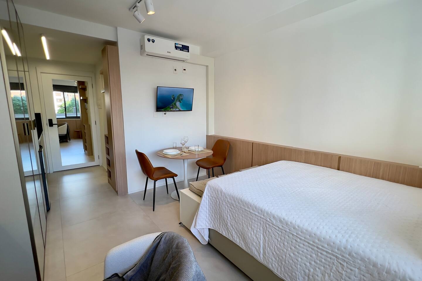 Aqui você vai encontrar: * Piscina panorâmica * Estacionamento (grátis) * Academia * Supermercados, restaurantes, farmácias próximas * Coworking 24h * Cozinha equipada * Aceita Pets * Lava + seca no local (pago) * Wi-Fi de 350 Mbps * 1 Smart TV * Ar-condicionado * Lareira no terraço 20 min → Aeroporto 6 min → Parque Moinhos 4 min → Parcão Moinhos 3 min → Supermercado (Zaffari) Tudo que você precisa para uma temporada com conforto, lazer e segurança.n