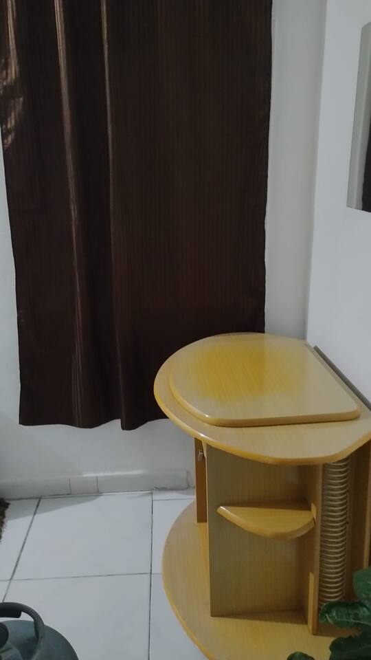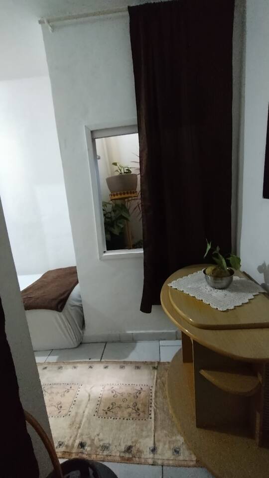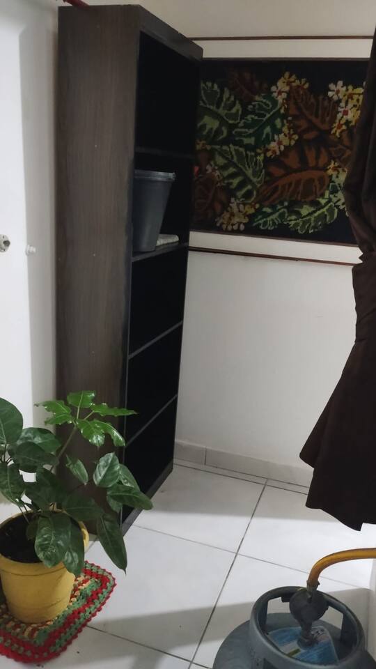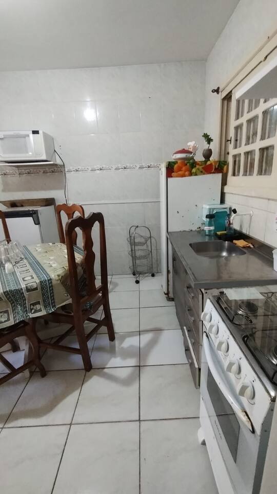 Entrada e saída dos hóspedes pela garagem,, no apartamento tem 2 dormitórios, sala e cozinha anexada.