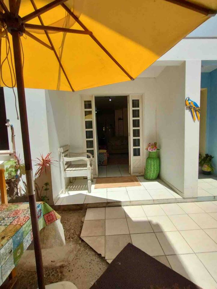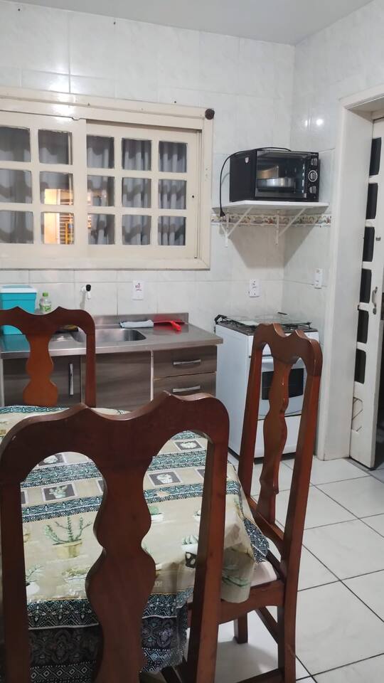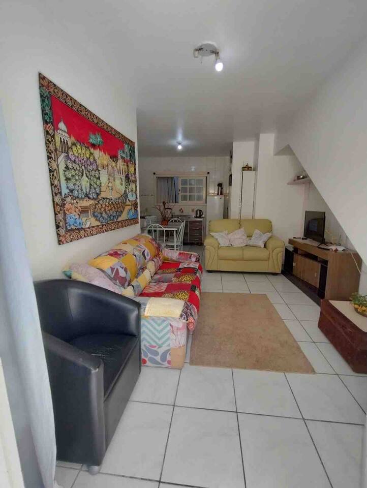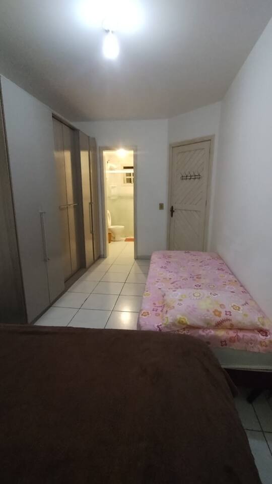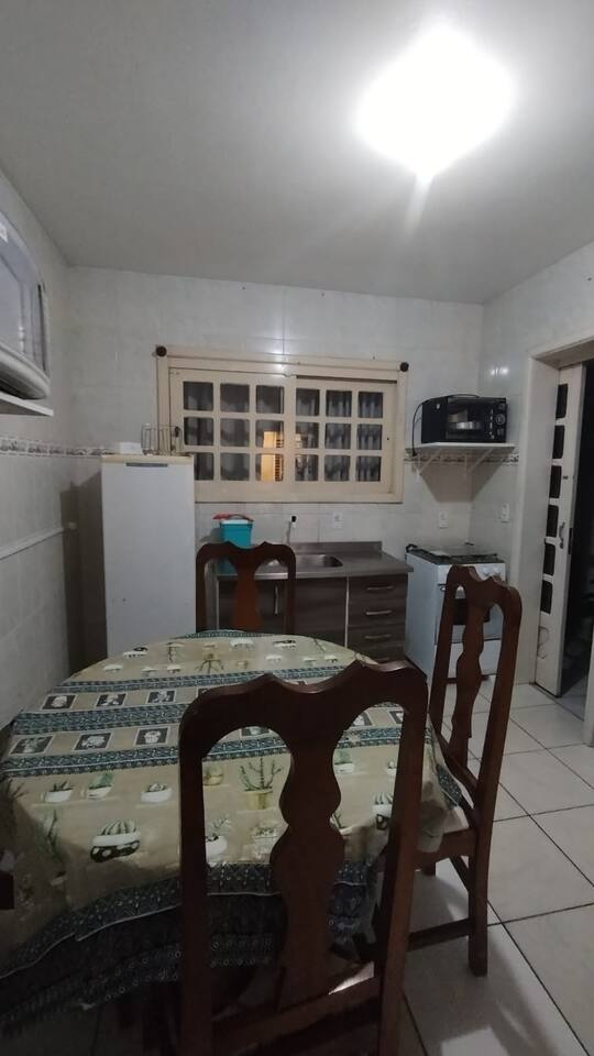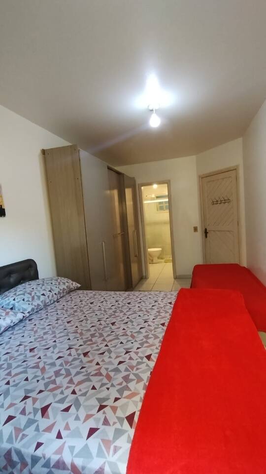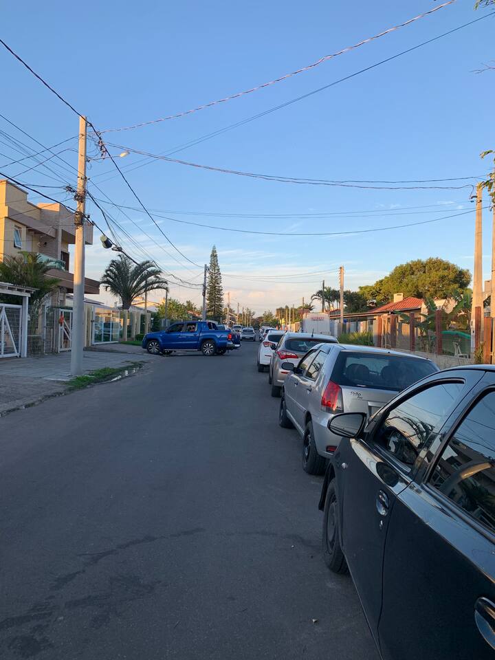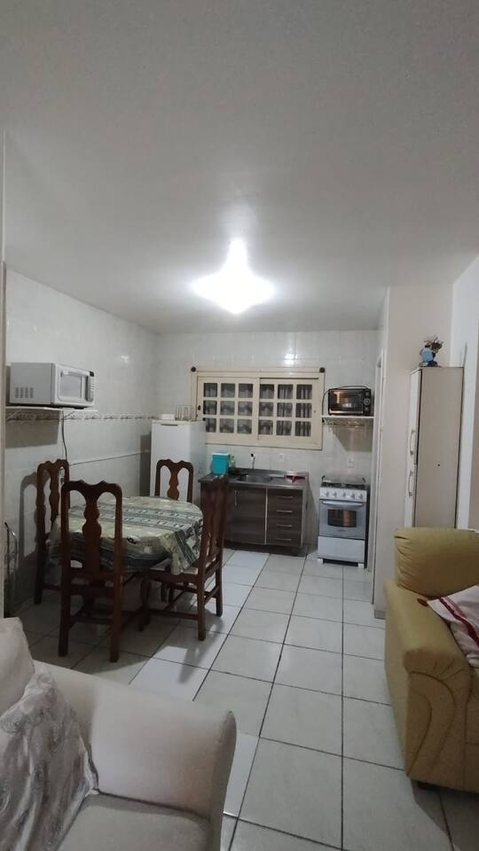 Acomoda de 6 á 7 pessoas confortavelmente, com , mesa com cadeiras, na frente do apartamento térreo, ombrelone, para sombrear o espaço. Na ida ao mar passa por uma linda e extensa praça, com áreas esportivas, e brinquedos de madeira e infláveis para a criançada. Á 2 minutinhos de á pé de restaurantes, churrascarias pubs, xis vingadores e outros. OBS: No calendário valor em dias normais está para 5 pessoas. Datas festivas valor está para 7 pessoas. vindo mais pessoas obrigatóriamente avisar
