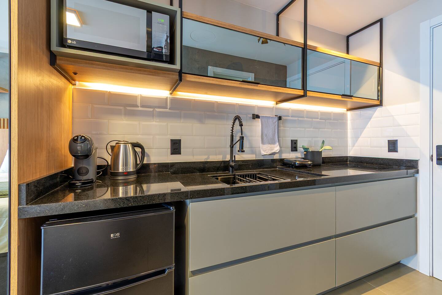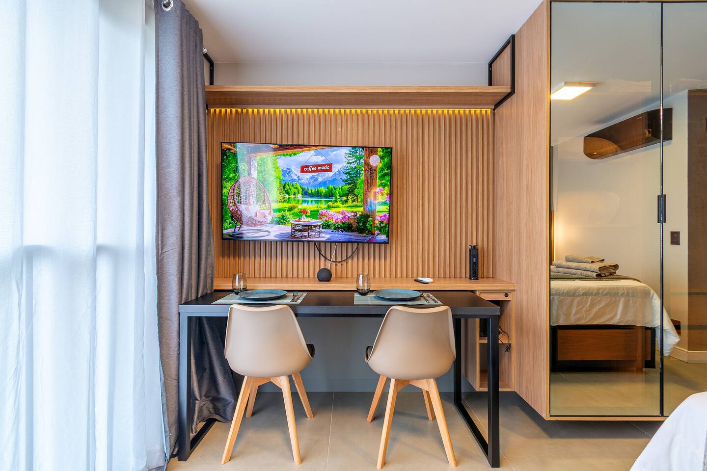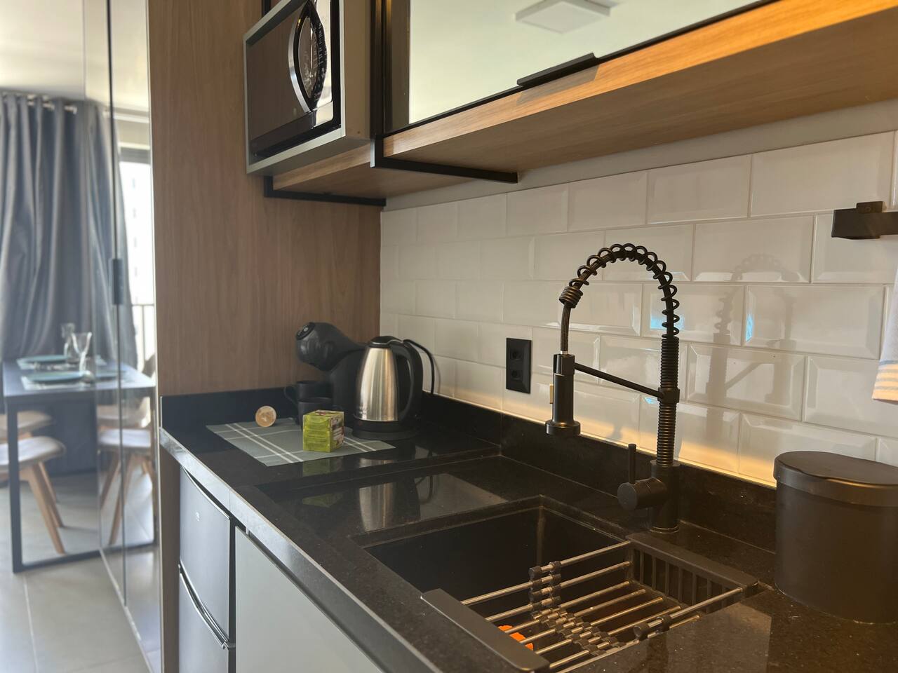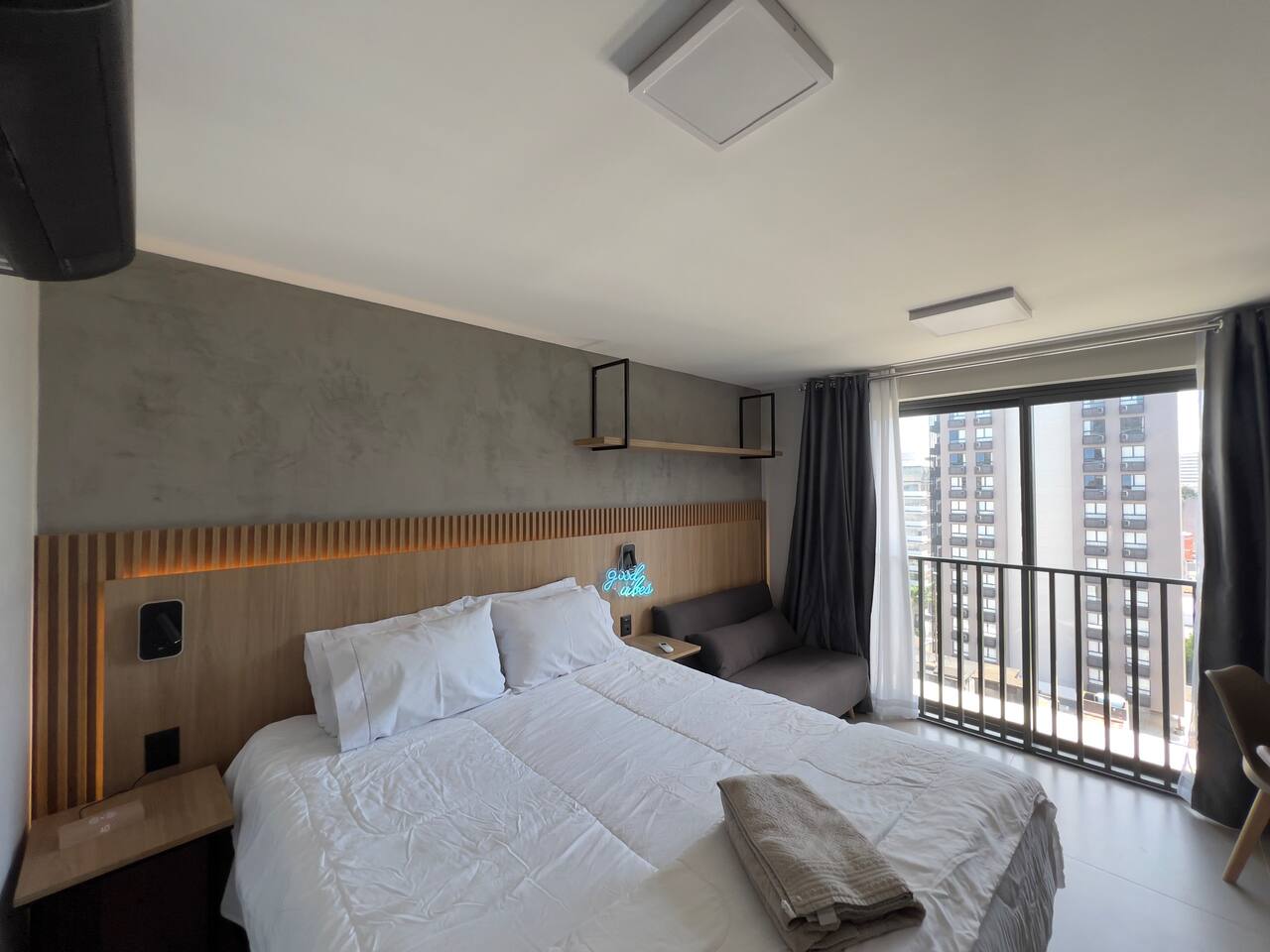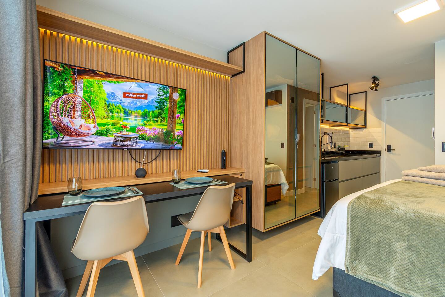 O espaço é realmente igual nas fotos. Tudo muito limpo, cheiroso e de muito bom gosto. Os espaços comuns são lindíssimos, ótima infraestrutura, piscina térmica e uma vista incrível para a cidade. Mercadinho muito prático que atendeu muito bem as necessidades. Conforto e segurança. Bairro ótimo, vários bares e restaurantes próximos. O Lucas foi um ótimo anfitrião, nos respondeu com agilidade sempre cordial e simpático. Adoramos! Recomendo!
