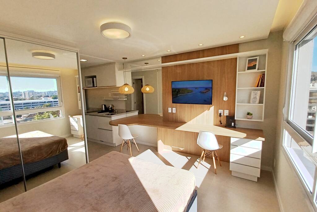 Available to use everything in the building! • Fitness • Swimming pool • Free internal parking (register license plate with doorman) • Pet place • Rooftop terrace (with barbecue spots) • Coworking 24h • Laundry room (reserve) We are so excited to be hosting you!