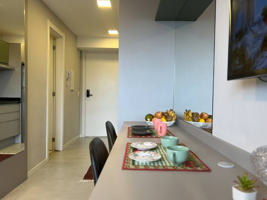 O apartamento estava impecável: tudo muito limpo, organizado, com um cuidado que se percebe em cada detalhe. O banheiro e o chuveiro são excelentes, proporcionando ainda mais conforto à estadia.