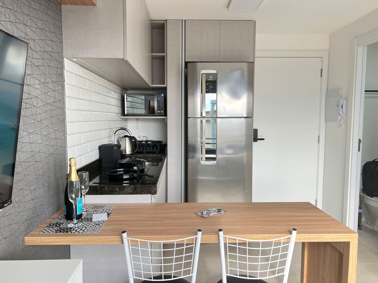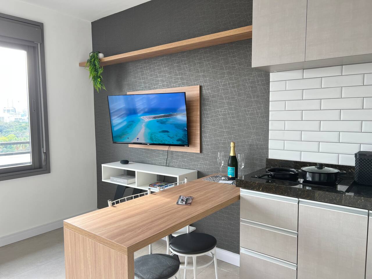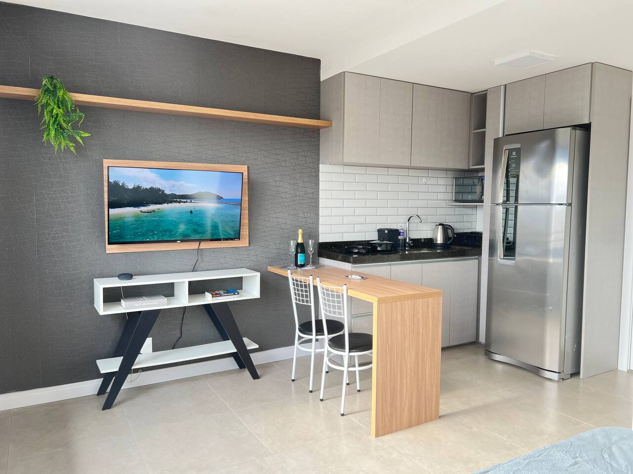 Apartamento completo no condomínio JP Redenção, ao lado do Centro Histórico, Bom Fim e Parque da Redenção. ✅ Vaga de garagem (sujeita a disponibilidade) ✅ Cozinha equipada ✅ Smart TV ✅ Cama de casal confortável (queen) ✅ Internet wi-fi disponível ✅ Banheiro com chuveiro quente ✅ Secador de cabelo ✅ Microondas ✅ Fogão por indução ✅ Refrigerador com freezer ✅ Talheres e copos ✅ Toalhas e roupas de cama ✅ Airfryer ✅ Sofá cama pequeno