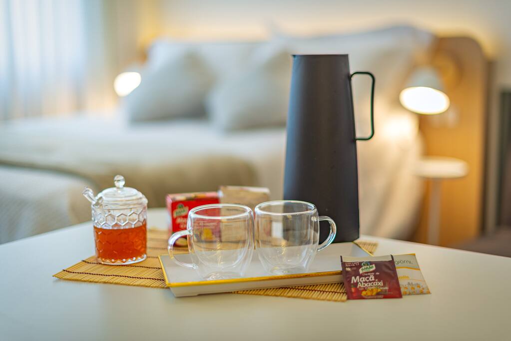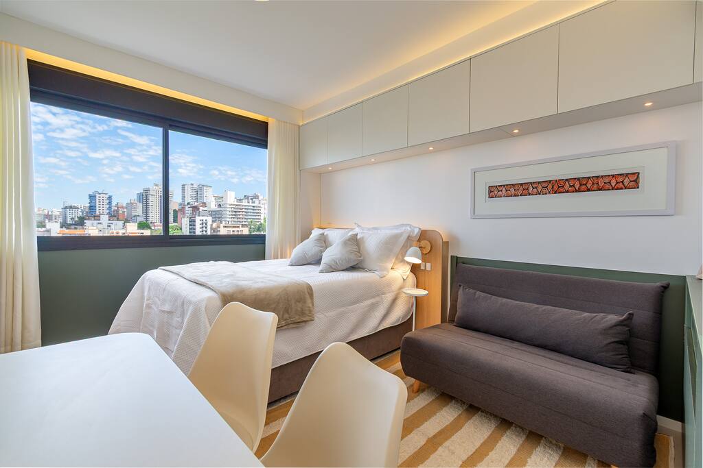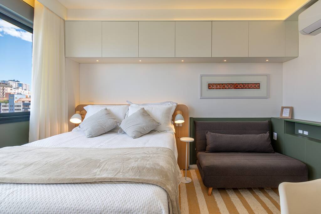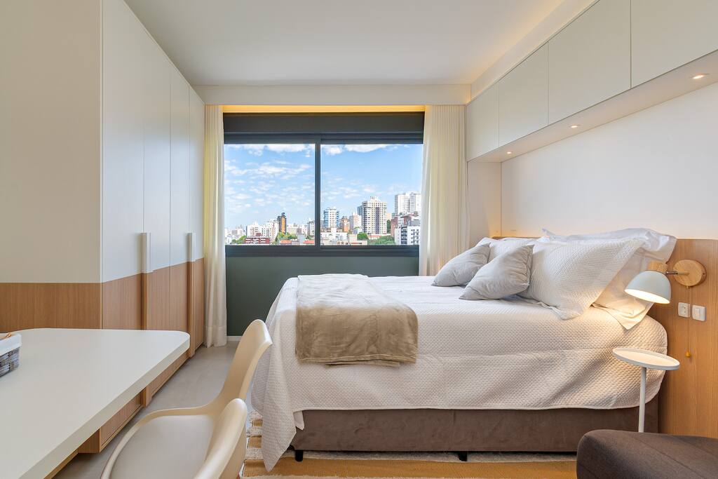 Imagine entrar em um espaço preparado para te receber do jeito que você precisa. A cama para ótimas noites de sono e a cozinha muito bem equipada permitem que você prepare suas refeições no seu ritmo. A cristaleira linda confere um charme especial ao ambiente. Aqui você encontra Wi-Fi rápido para se manter conectado e ar-condicionado para um clima perfeito. Perfeito para relaxar e aproveitar a cidade com conforto e praticidade 🏡 Saiba mais