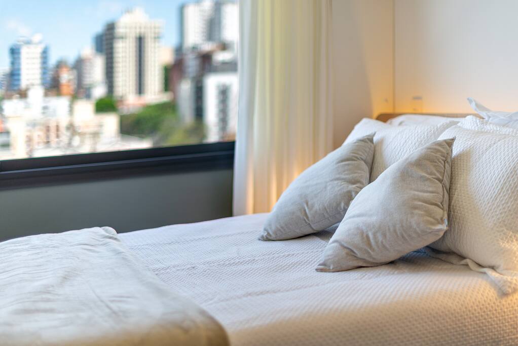 O acesso principal é feito pela portaria 24h, garantindo segurança e flexibilidade. Durante a estadia, os hóspedes podem usufruir de diversas áreas comuns do prédio, incluindo: 🏊♂️ Piscina panorâmica com vista incrível, vestiário e chuveiro externo 🌇 Rooftop com uma vista deslumbrante da cidade 24h 🏋️♀️ Academia moderna e bem equipada 24h 💻 Espaço coworking confortável e funcional 24h 🧺 Lavanderia 24h compartilhada (uso pago - s/ precisar reservar) 🚗 Estacionamento rotativo gratuito — necessário informar a placa do veículo 🚲 Bicicletario disponível para os hóspedes