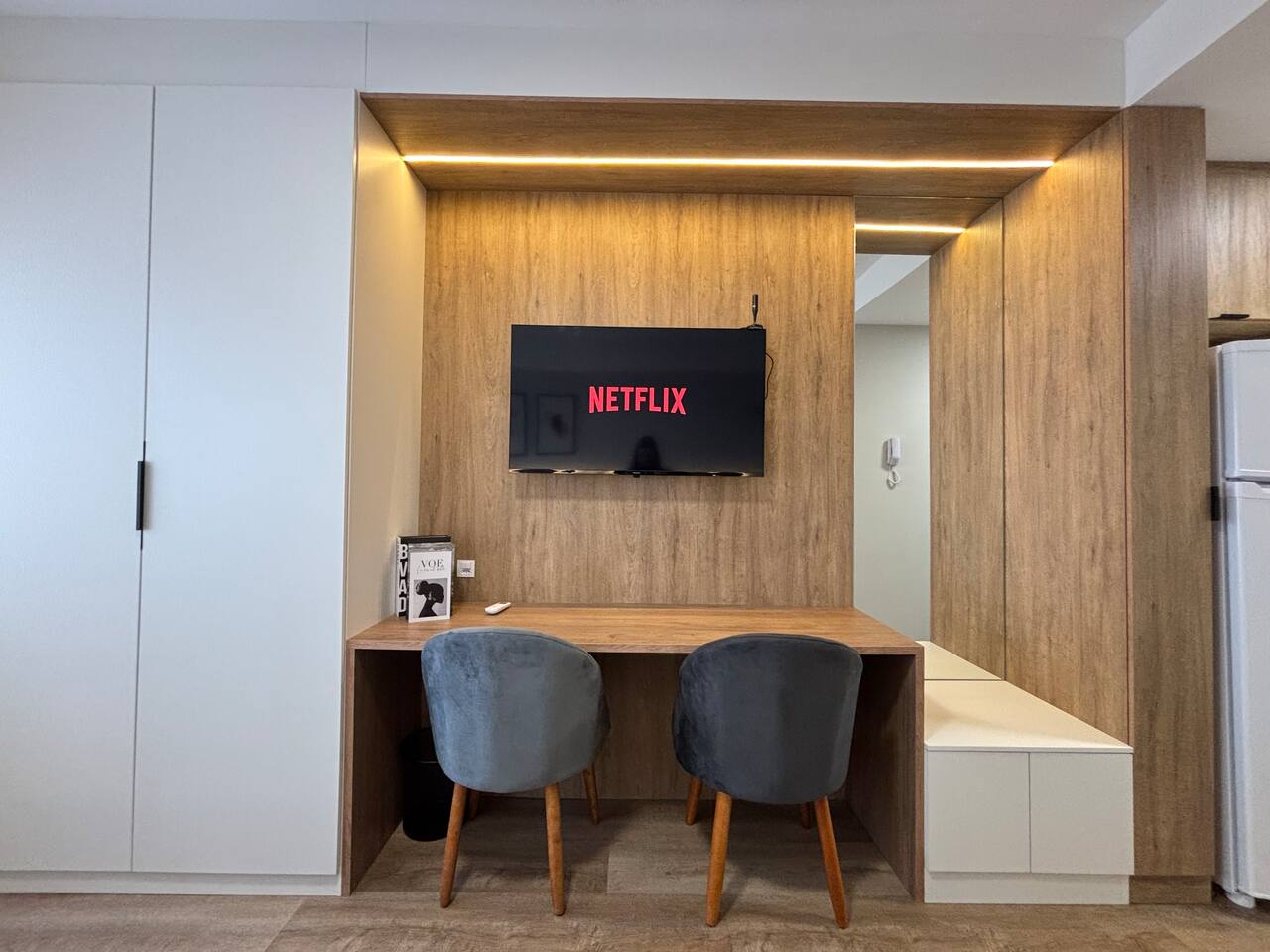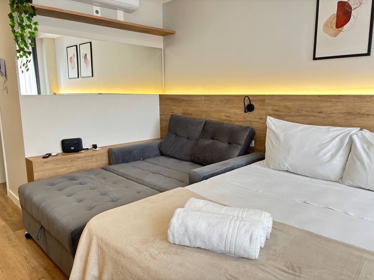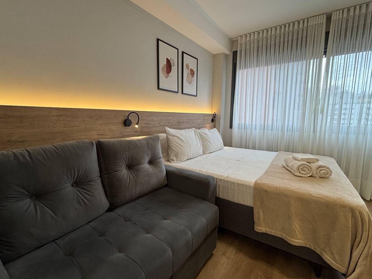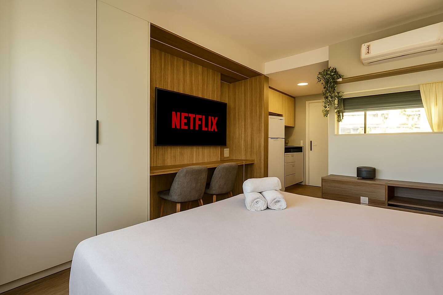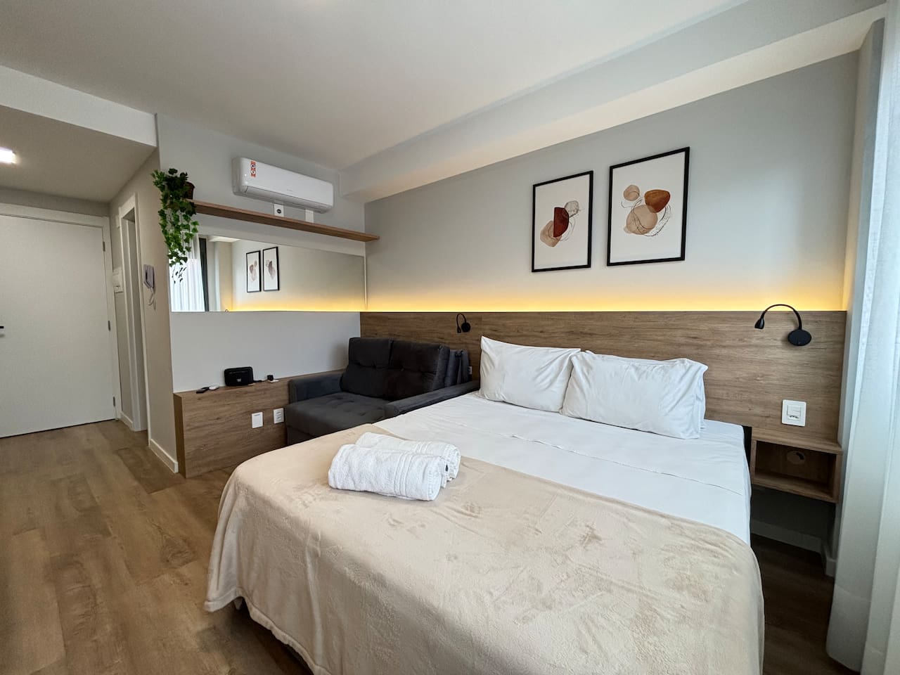 Você terá acesso a uma estrutura de lazer e trabalho que vai além das expectativas 😍✨ 🛟 Piscina panorâmica com toda a infraestrutura para relaxar e apreciar uma vista de tirar o fôlego . 🔥 Rooftop com lareira ecológica e uma vista espetacular da cidade — perfeito para momentos inesquecíveis, de dia ou à noite. 🏋️♂️ Academia moderna e completa, para você manter sua rotina de treinos mesmo fora de casa. 💻 Coworking com ambiente inspirador, ideal para quem precisa trabalhar remotamente com foco e produtividade. 🚗 Estacionamento rotativo incluso na diária, trazendo mais praticidade e conforto à sua estadia. 🧺 Lavanderia 24h self-service (paga), para sua conveniência durante estadias mais longas. 📇 o check-in poderá ser realizado em qualquer horário após as 15h pois possuímos portaria 24h.