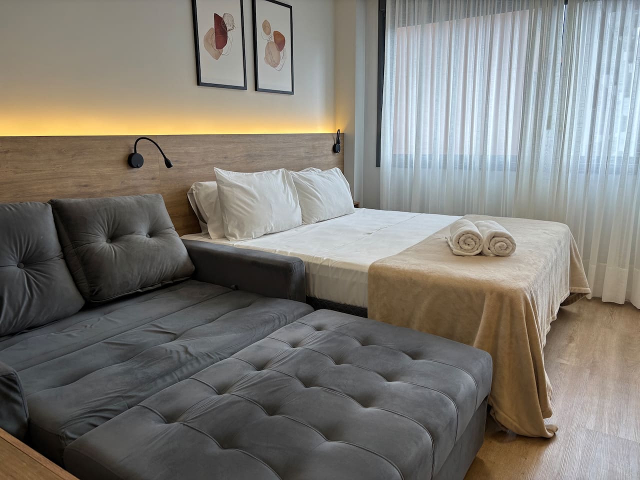 📺 Sala confortável com TV e internet de alta velocidade 🍳 Cozinha equipada para preparar suas refeições 🛏️ Quarto acolhedor e silencioso 🚿 Banheiro moderno e funcional