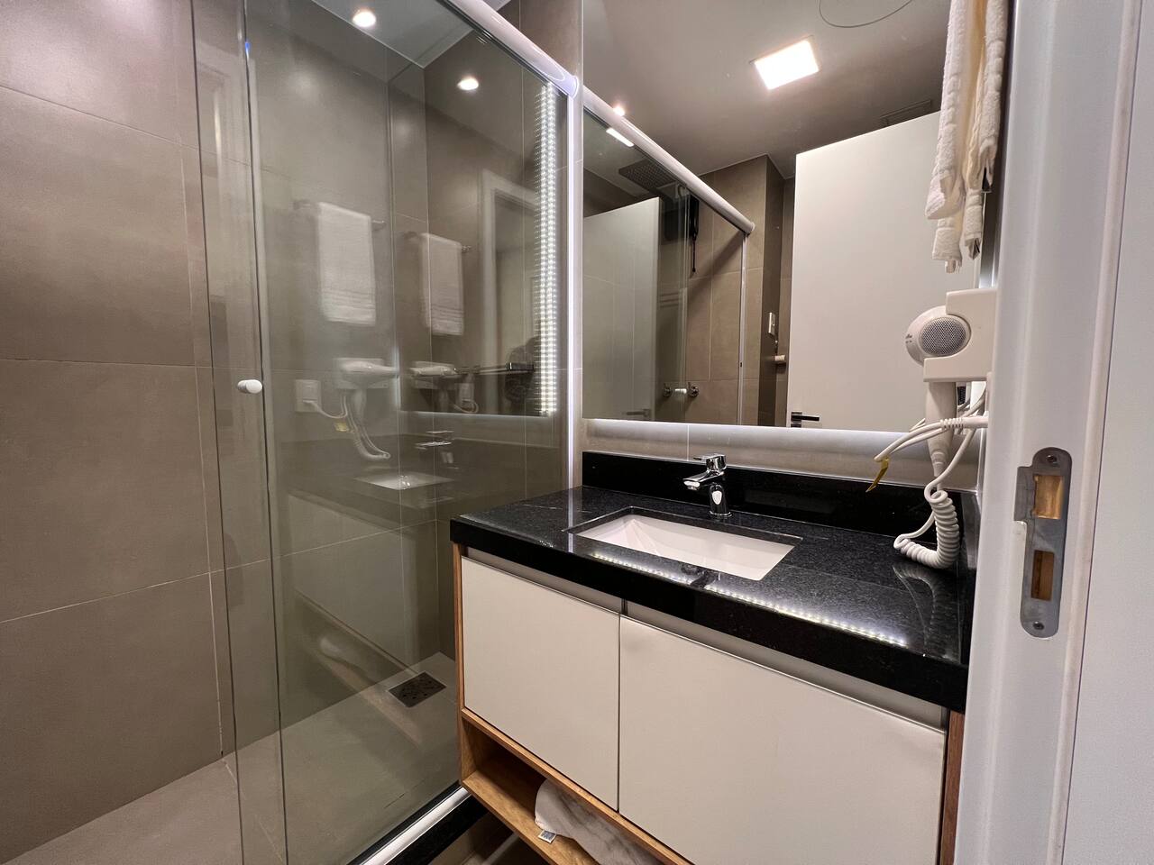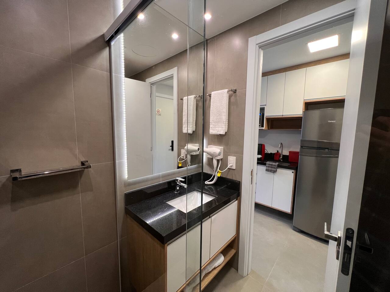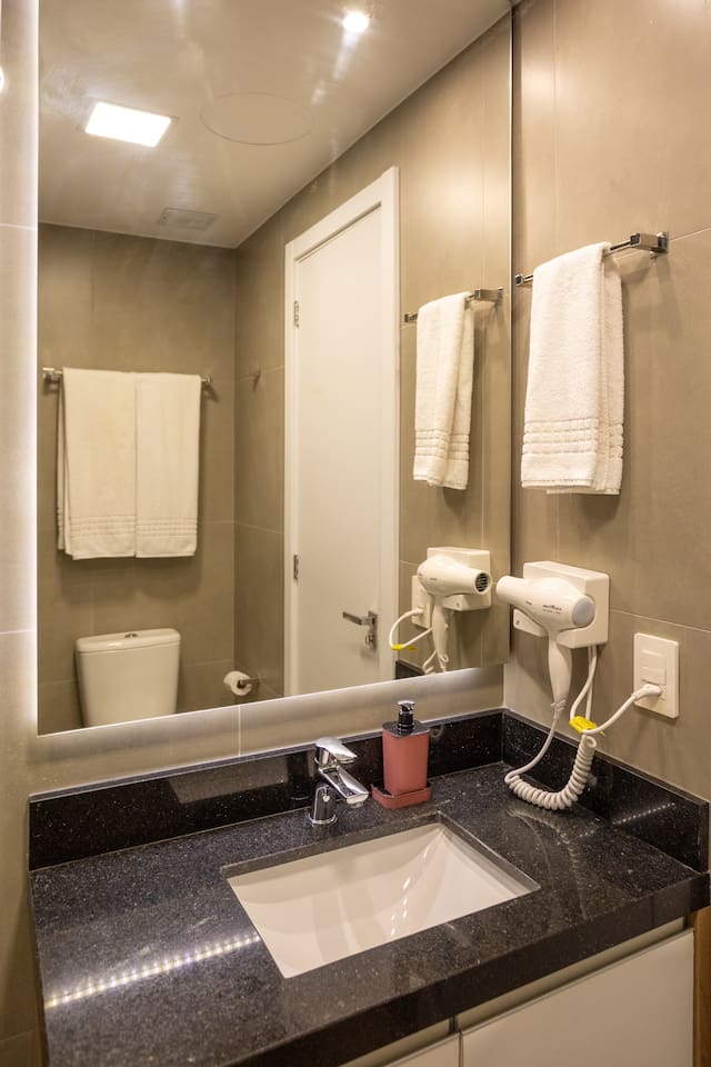 Acesso (24h)👇 • Piscina (Aquecida) + vestiário e chuveiro externo • Academia • Portaria • Cowork • Sinuca • Mercadinho (interno) • Lavanderia (paga) • Estacionamento (pago) **Todas essas comodidades tem acesso 24h!** Aproveite! 💪 Hóspedes com acesso total a todas áreas do condomínio, inclusive piscina aquecida e academia, flat com fechadura eletrônica.