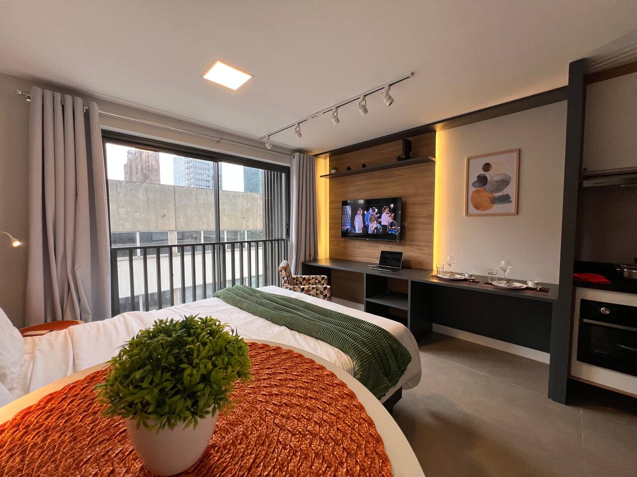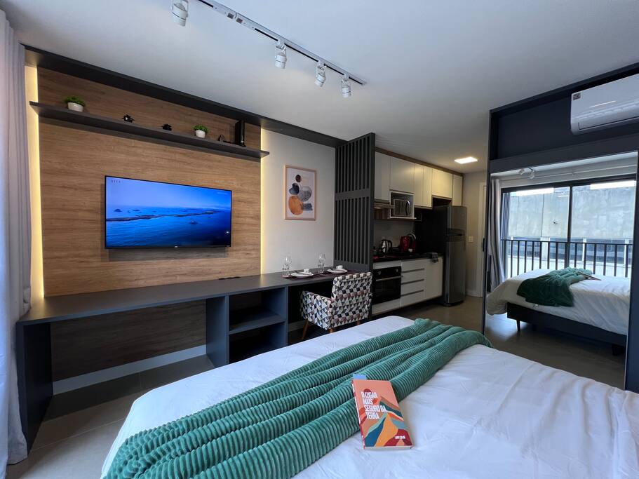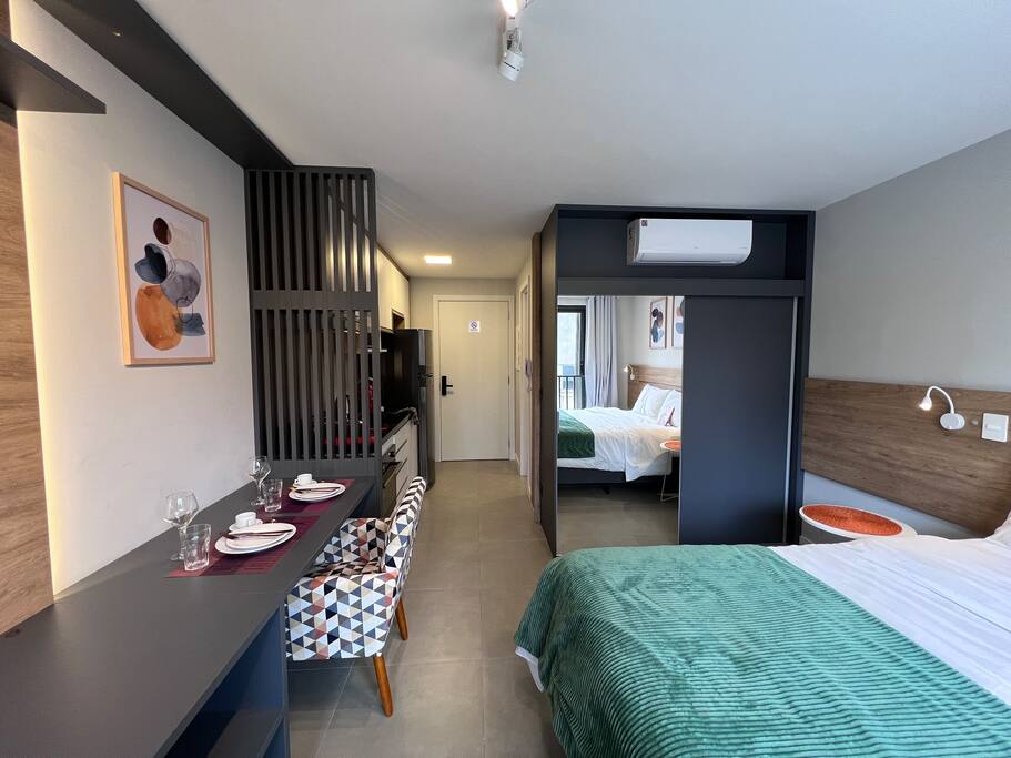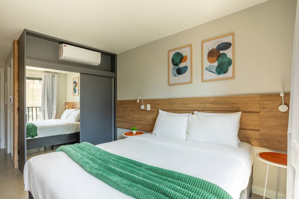 Temos aqui • Piscina Aquecida (terraço) 24h • Academia 24h • Cowork 24h • Lavanderia 24h • Mercadinho 24h • Bilhar 24h • Bicicletário c/ bikes disponibilizadas gratuitamente! • Internet rápida 500MB • Cama Queen • Churrasqueiras e forno (terraço) • Pet friendly • Estacionamento (pago) • Portaria 24h • Fácil cadastro, self check-in e acesso por código • Áreas para fumantes *toalhas e roupas de cama inclusas! *mande uma consulta!