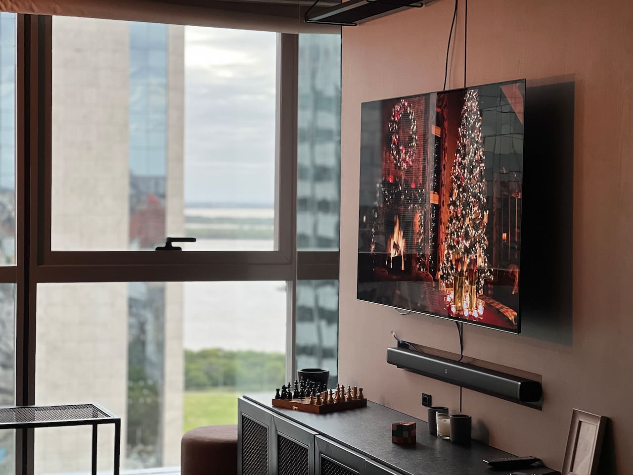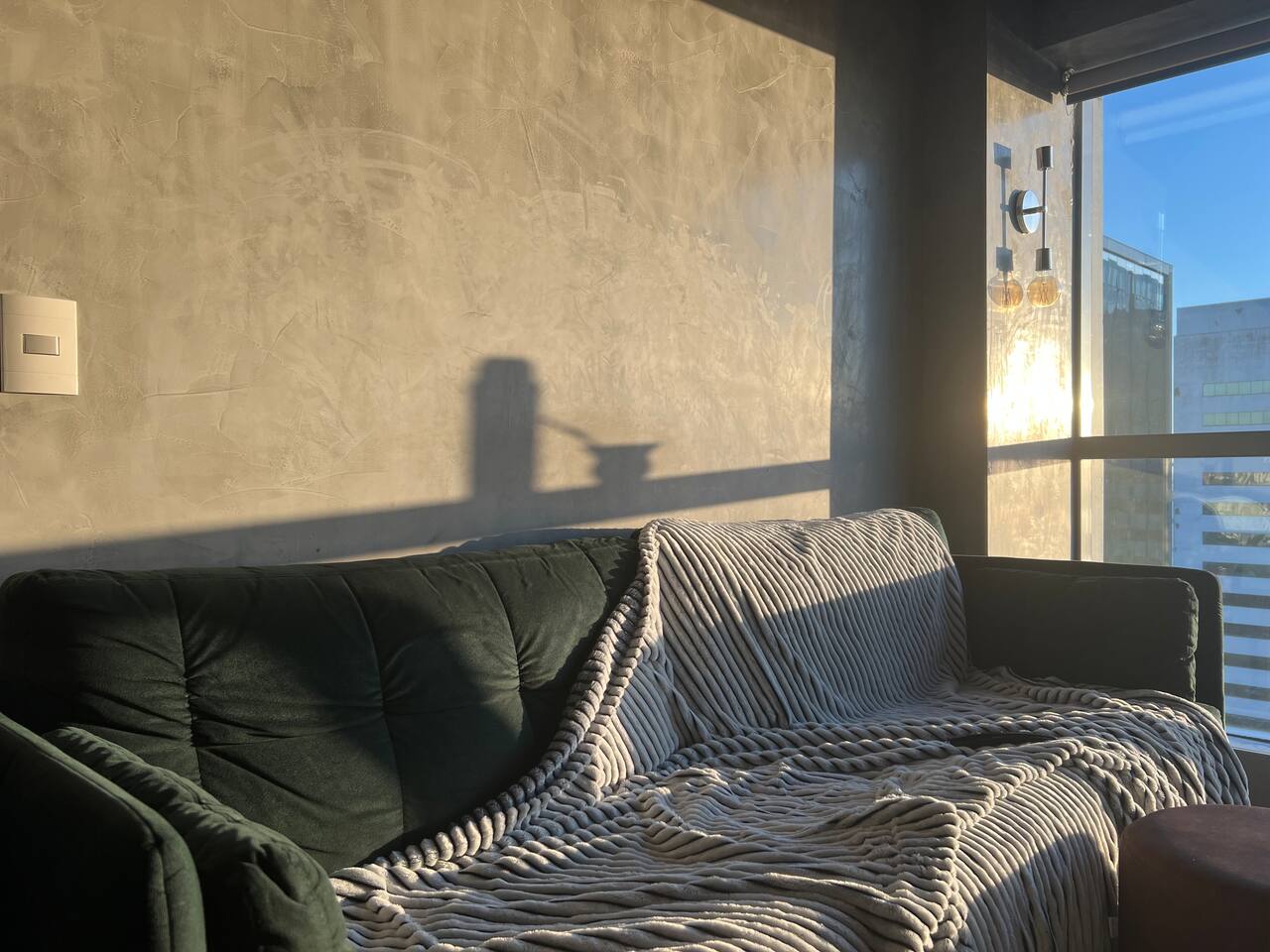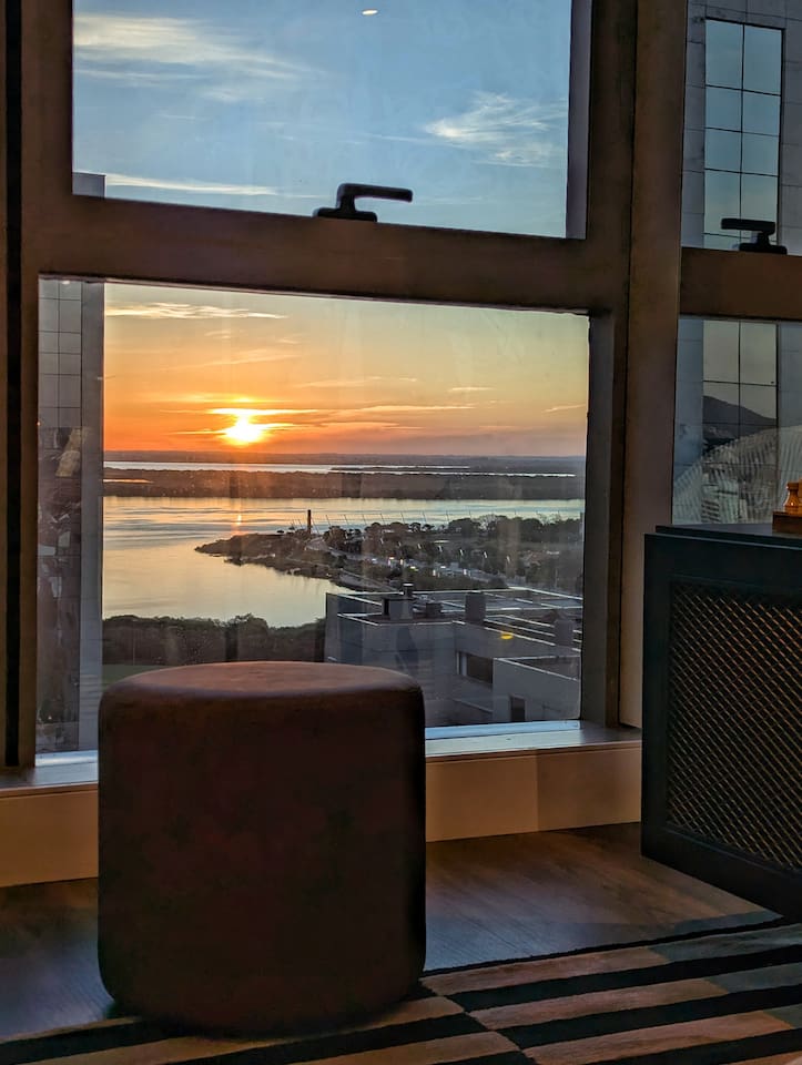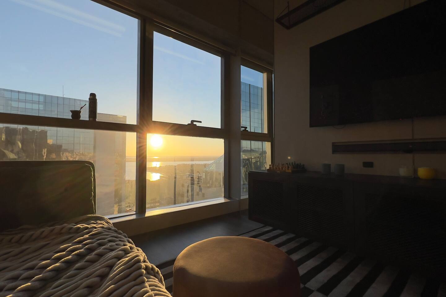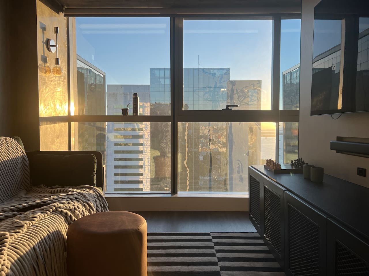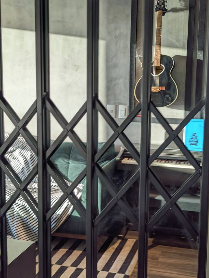 🛏️1 quarto separado da sala com cama box e blackouts 🛁 Banheiro moderno com acabamentos de alto padrão e ducha potente 🛋️ Sala de estar com sofá aconchegante, TV OLED Smart e iluminação natural incrível 🍳 Cozinha completa com eletros gourmet para quem ama cozinhar 🌅 Vista deslumbrante do pôr do sol (de Maio à Agosto) 📶 Wi-Fi rápido e mesa de trabalho para quem precisa produzir 🎵 Ambiente decorado com instrumentos musicais e toques artísticos